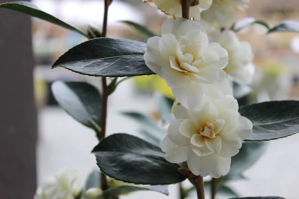 Camellia x williamsii ‘Buttermint’ is an evergreen shrub known for its exquisite, creamy white to buttery-yellow flowers that bloom in late winter to early spring. The blooms are semi-double, featuring delicate, ruffled petals with a soft, creamy white-yellow hue, often with a subtle fragrance. The glossy, dark green leaves provide a striking contrast to the light-colored flowers, enhancing their visual impact. ‘Buttermint’ is cherished for its long blooming period and the elegant, refined beauty it brings to the garden during the colder months. This variety is particularly effective as a focal point in shaded garden areas or as part of a mixed border, offering year-round interest with its persistent foliage and vibrant blooms.
