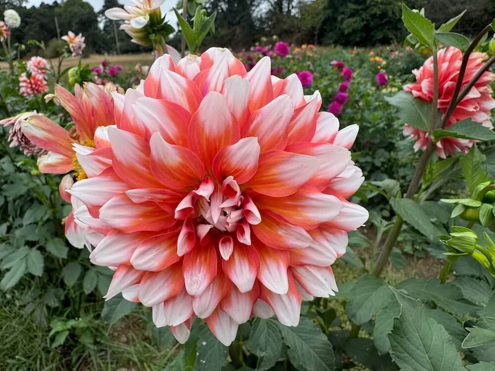 Many tubers and seeds are available online. You can visit dahliaaddict for help in finding online sources. This dahlia was seen at Frey’s Dahlias.