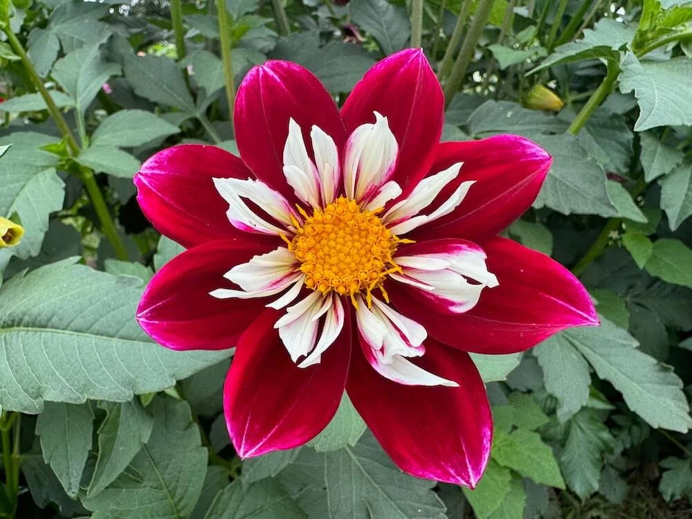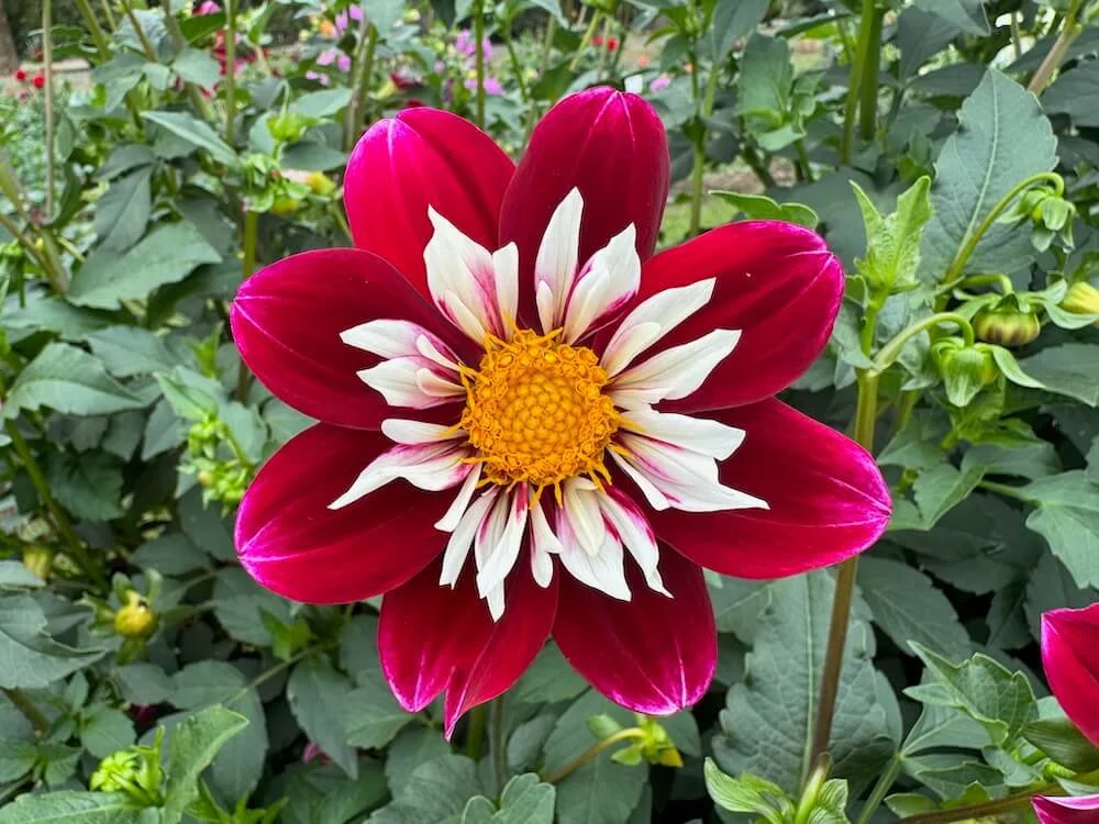 Many tubers and seeds are available online. You can visit dahliaaddict for help in finding online sources. This dahlia was seen at Frey’s Dahlias.