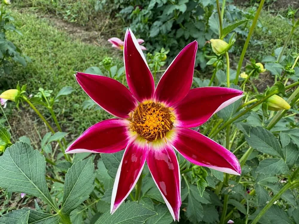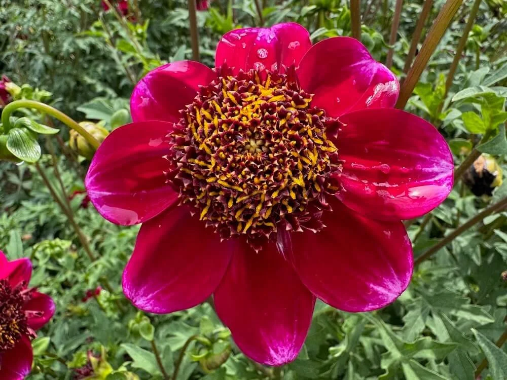 Many tubers and seeds are available online. You can visit dahliaaddict for help in finding online sources. This dahlia was seen at Frey’s Dahlias.