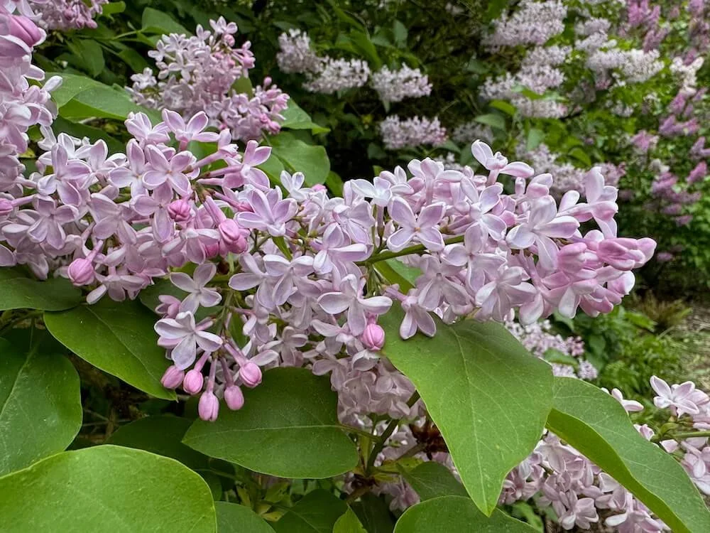 Lilac shrubs have long been appreciated for their fragrant flower clusters and classic springtime presence in gardens. Blooming in mid to late spring, their conical panicles appear in shades of lavender, purple, pink, white, and soft blue, filling the air with a sweet, familiar scent. Heart-shaped green foliage provides a dense, upright framework that supports the blooms and adds seasonal structure.