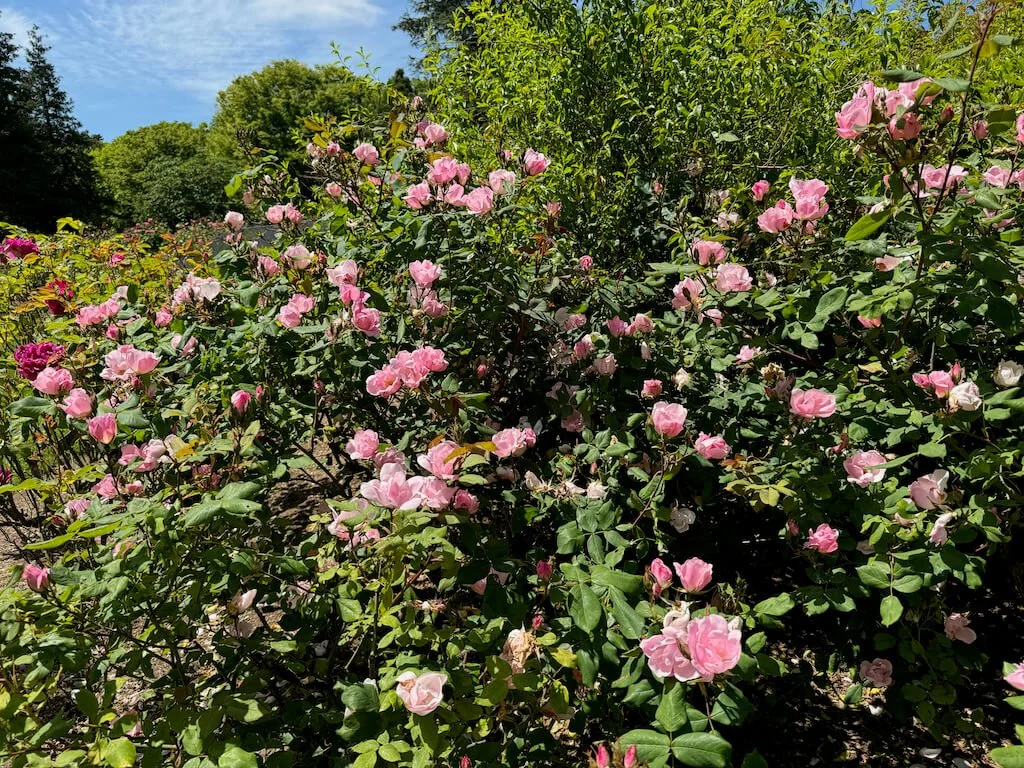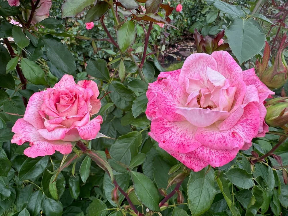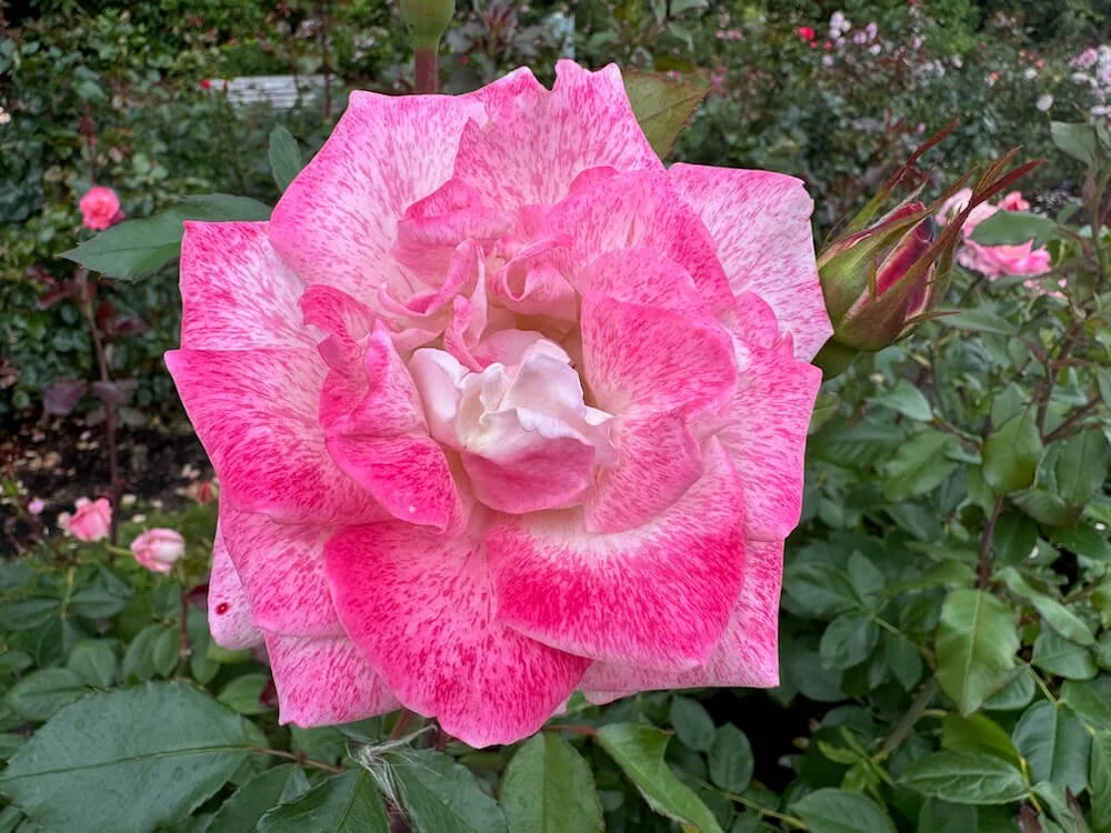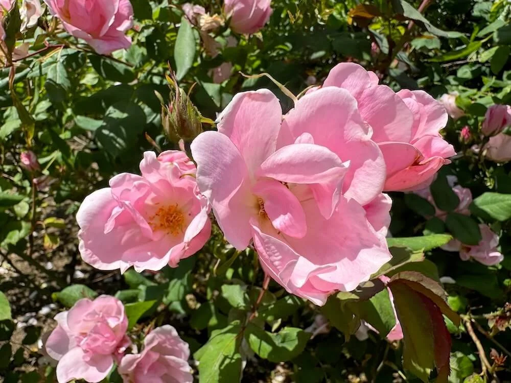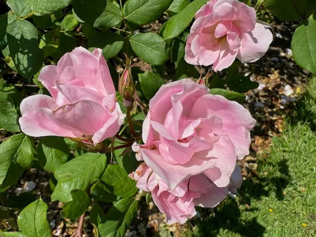 Rosa ‘Pink Promise’ is a hybrid tea rose known for its soft pale pink blooms with creamy or ivory undertones and subtle darker pink veining. The high-centered flowers appear in regular flushes from late spring through autumn, emitting a sweet, fruity fragrance. Glossy dark green foliage frames each bloom and maintains clean appearance throughout the season.